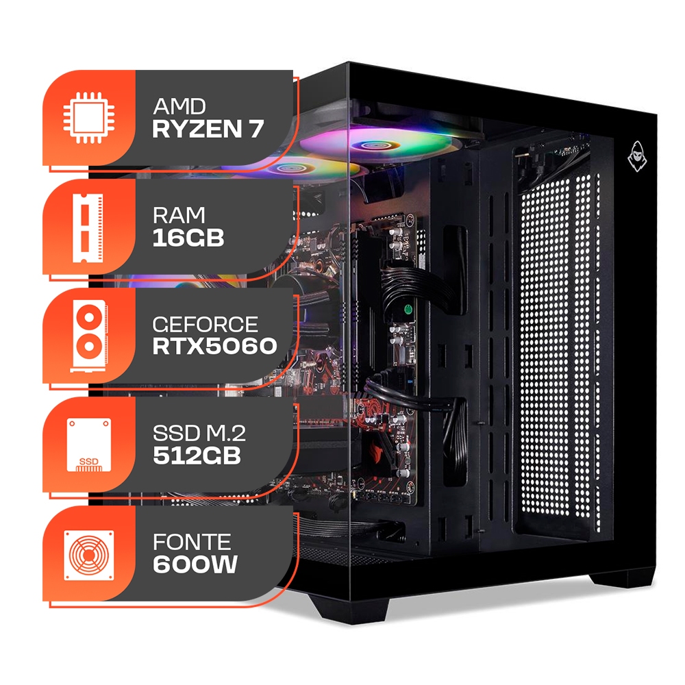 Gabinete Gamer Cooler Master Masterframe 600 Mesh, ARGB, Mid-Tower, Com 3 Fans, Preto, MF600M-KGNN-S01