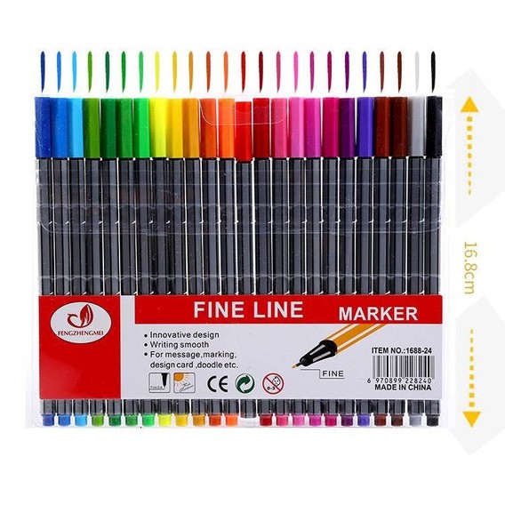 Kit com 24 canetas Fine Line Ponta Fina 0,4 mm