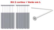 Kit 2 Cortinas de Box para Banheiro + Suporte Varão Bastão em L + Kit Instalação