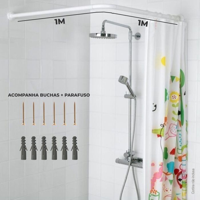 Porta Cortina Banheiro Box Varão Tubo Curvo De Aço Em L +kit-