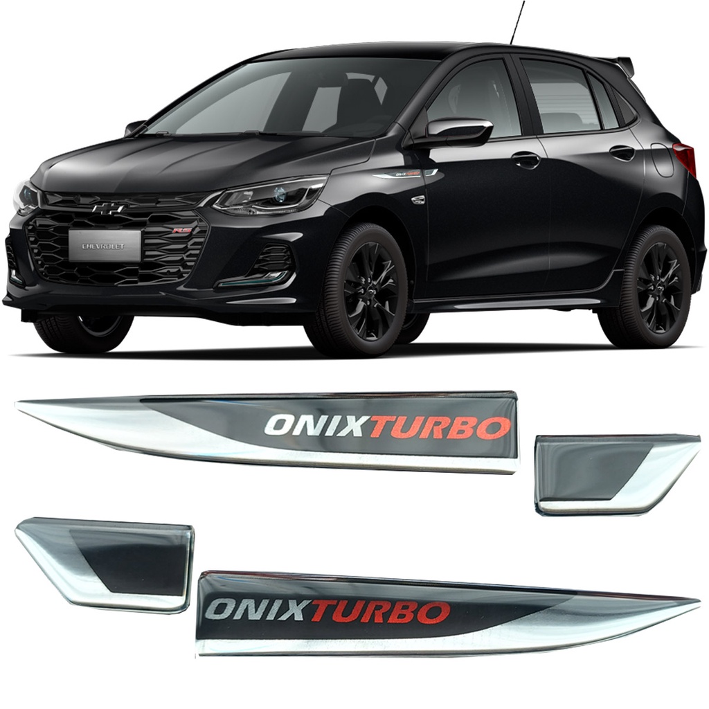 Par Aplique Lateral Adesivo Esportivo Da Porta Chevrolet Gm Onix Turbo Plus 2020 2021 2022 2023 2024