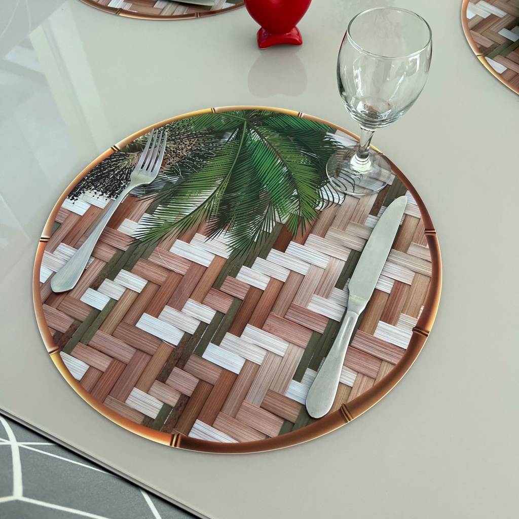 Jogo Americano Supla Sousplat ImitandoTexturas Decorado Folhagens Plástico Mesa Posta Cozinha Sobre Prato