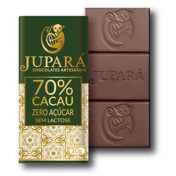 Barra de Chocolate Amargo Jupará 70% Cacau, Sem Açúcar, Sem Lactose, Sem Glúten