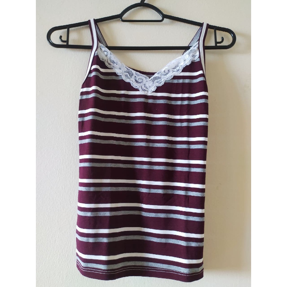 Regata feminina vermelho vinho listrada com branco PP/P - Brechó da Lety