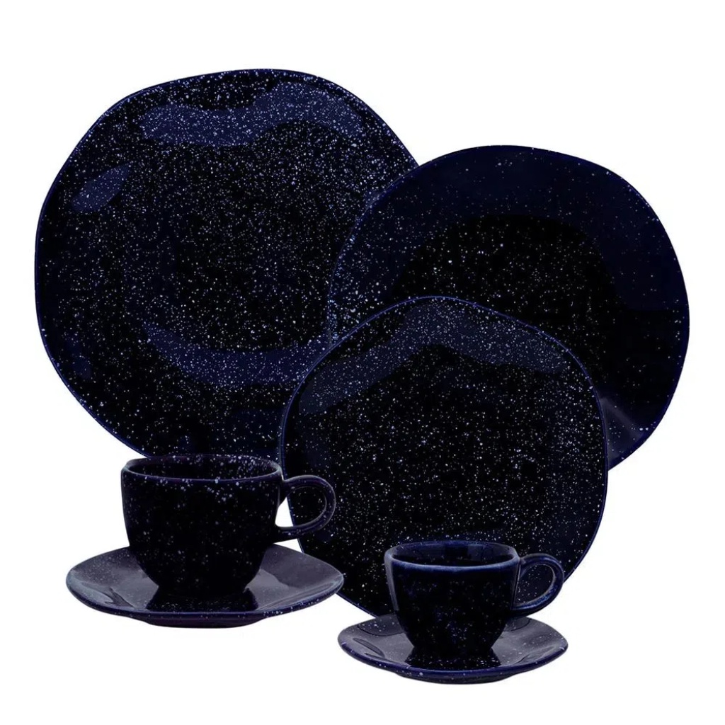 Aparelho De Jantar Ryo Safira 42 Peças Azul Escuro Oxford Porcelanas