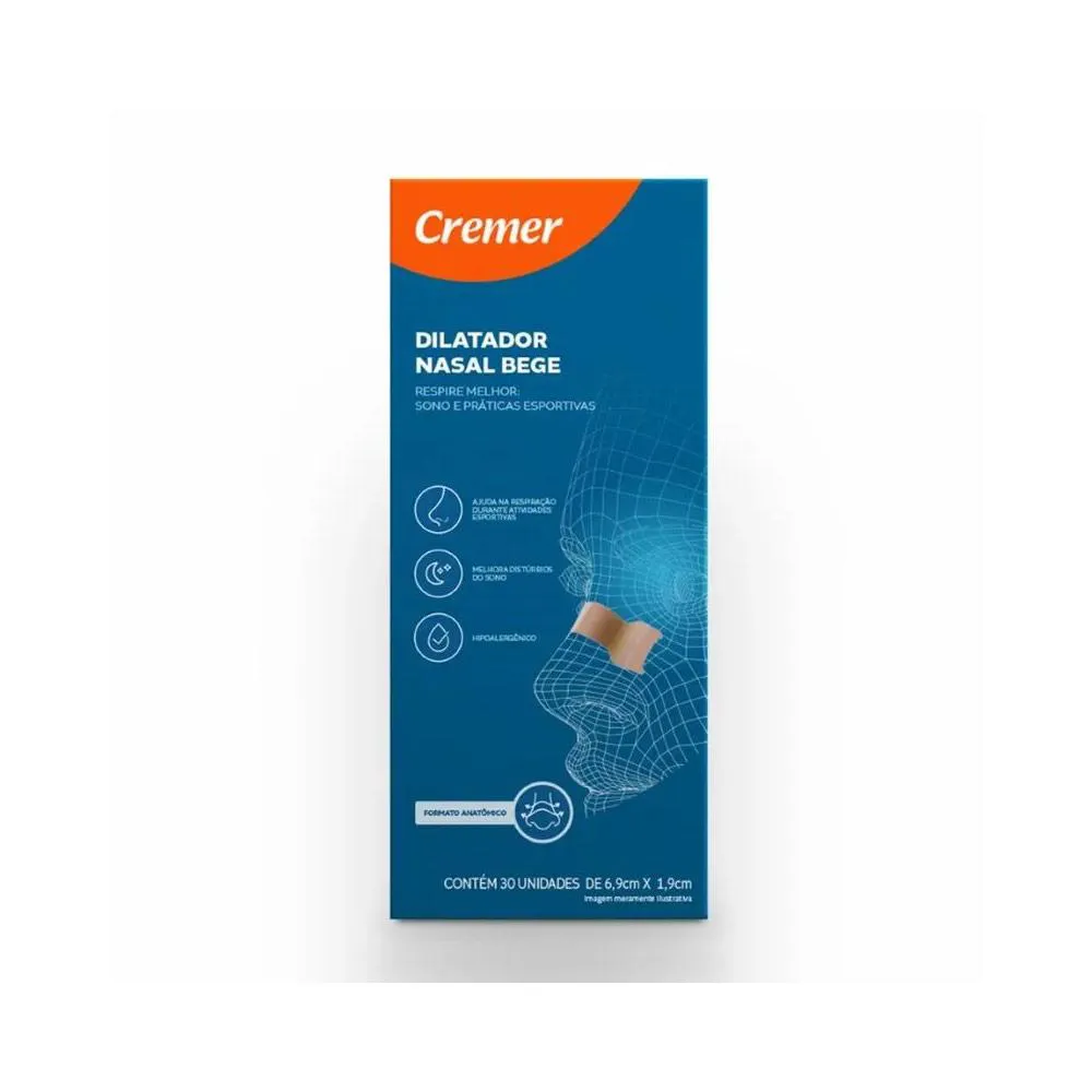 Dilatador Nasal Cremer Formato Anatômico Cor Bege com 30 Unidades