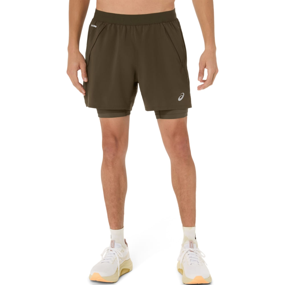 Shorts ASICS Road 2-N-1 5In - Masculino - Marrom/Verde