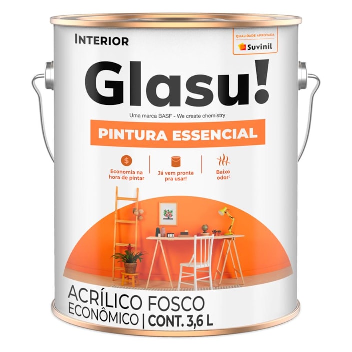 Tinta Acrílica Glasu Pintura Essencial Branco Neve Fosco 36L
