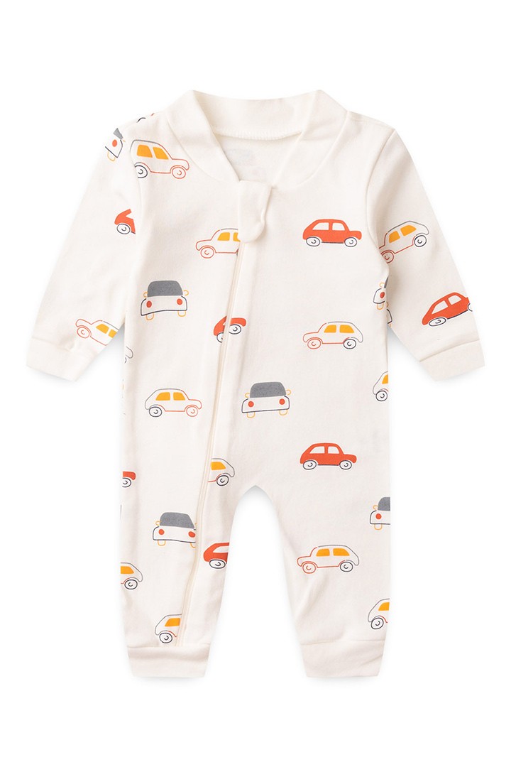 Macacão Bebê Off White Carrinho (RN/P/M/G)