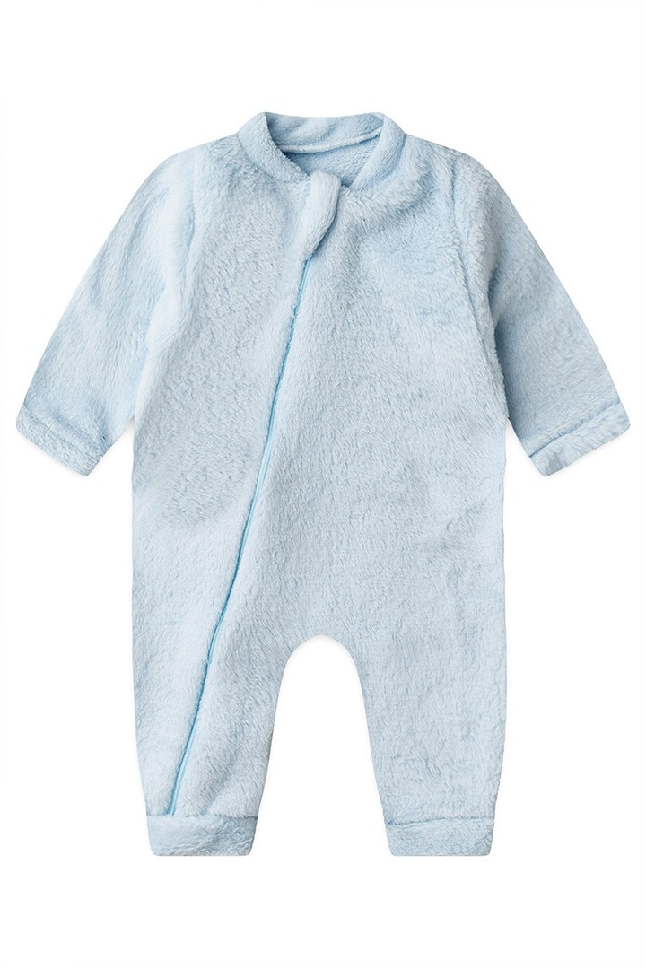 Macacão Bebê Fleece Azul Liso (RN/P/M/G/1)