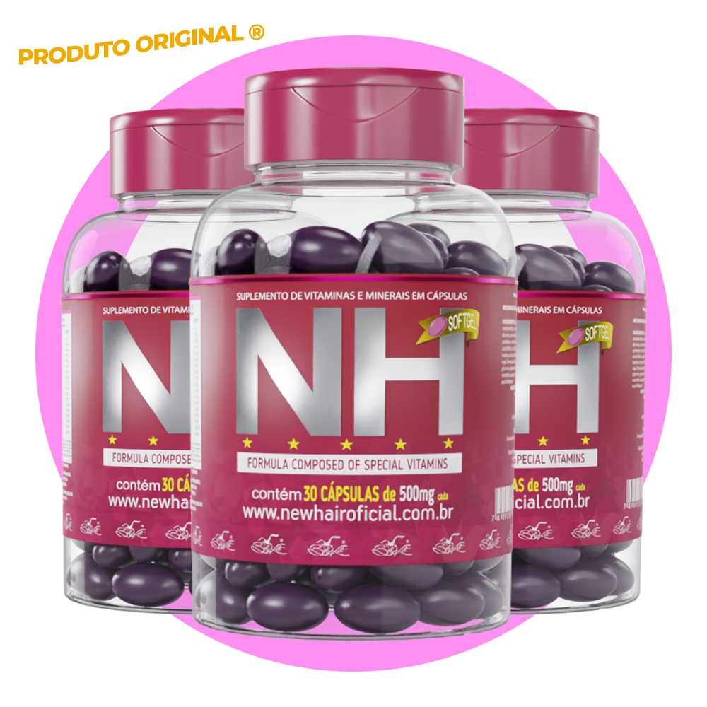 Combo 3 potes NH New Hair 30 cápsulas (Vitamina para cabelos) - Crescimento capilar, combate a queda