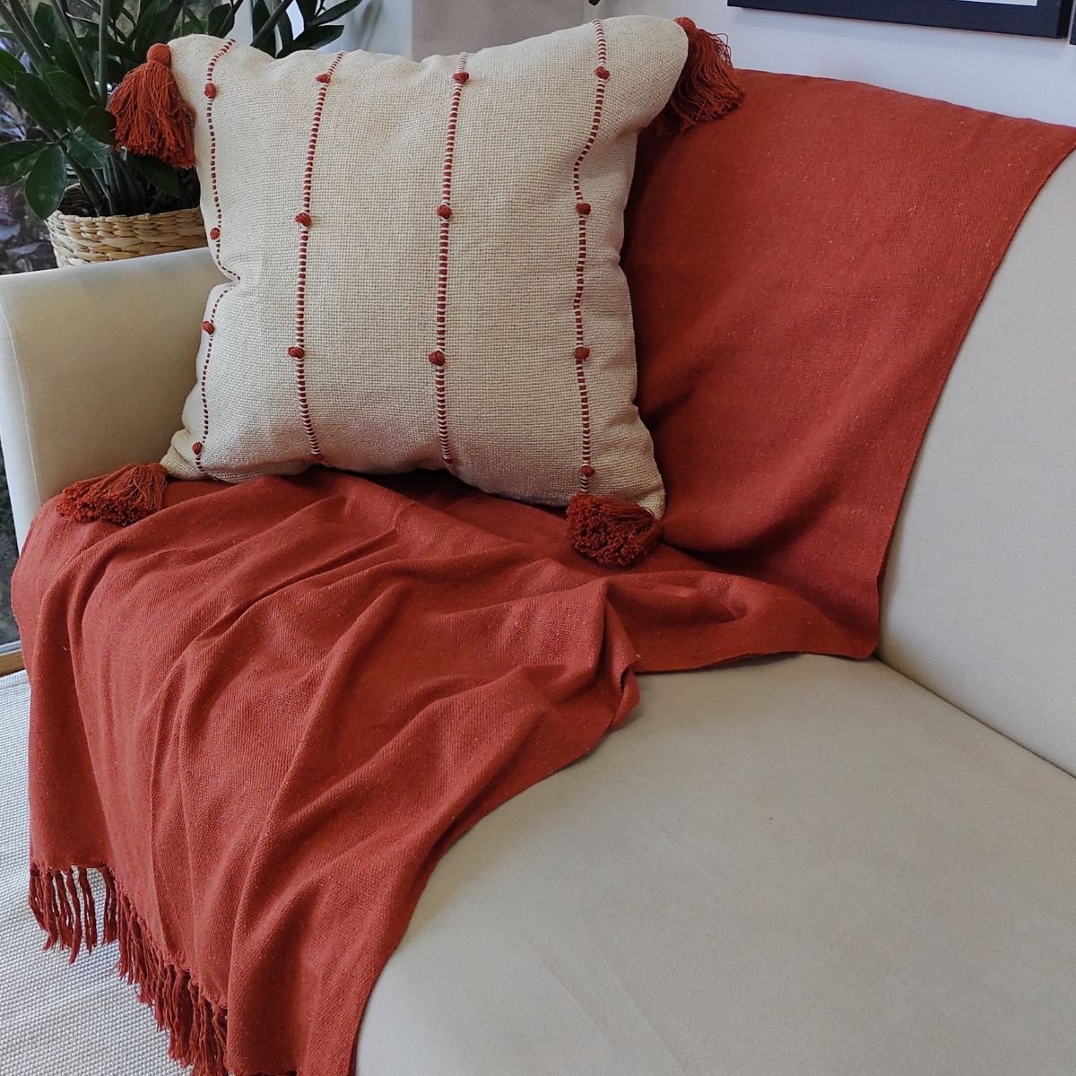 Manta Decorativa Sofa Grande Algodao Terracota 1,80x2,50