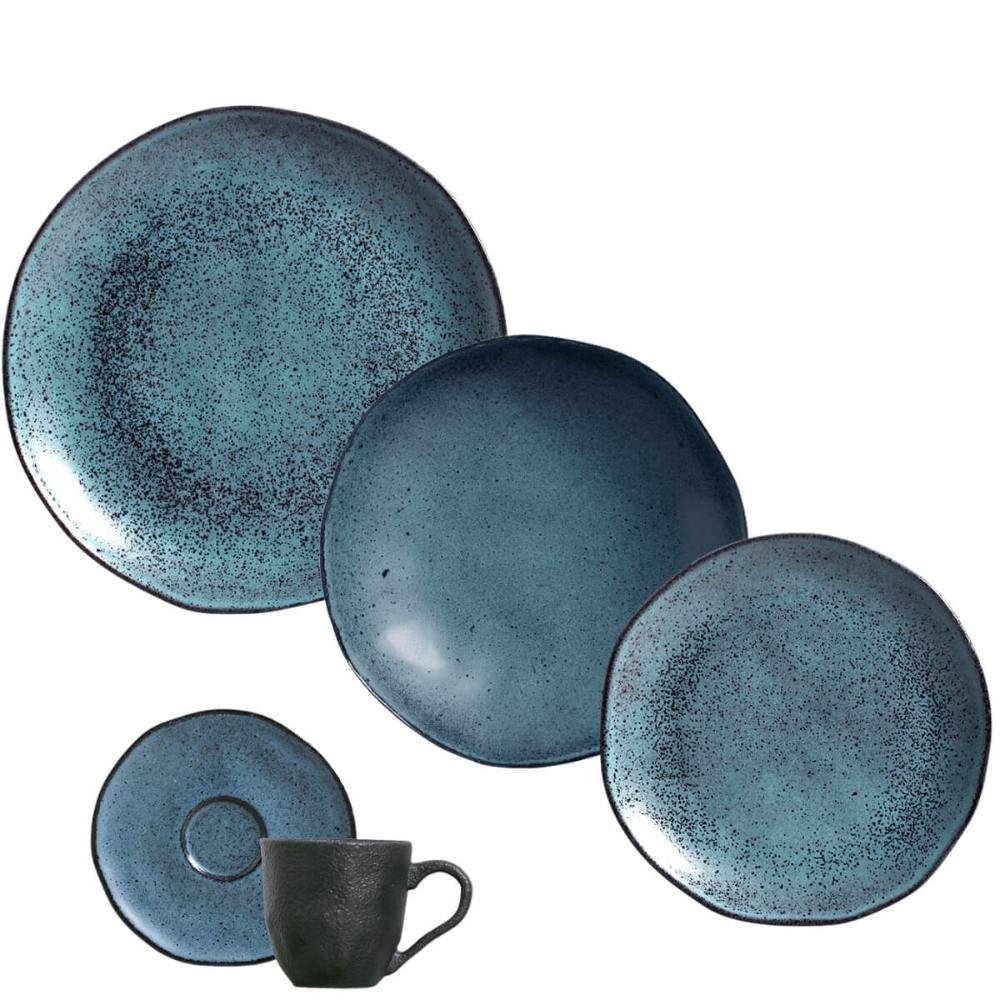 Aparelho de Jantar Orgânico Petroleum 30 Peças Porto Brasil Cerâmica Stoneware Azul Mesa Posta