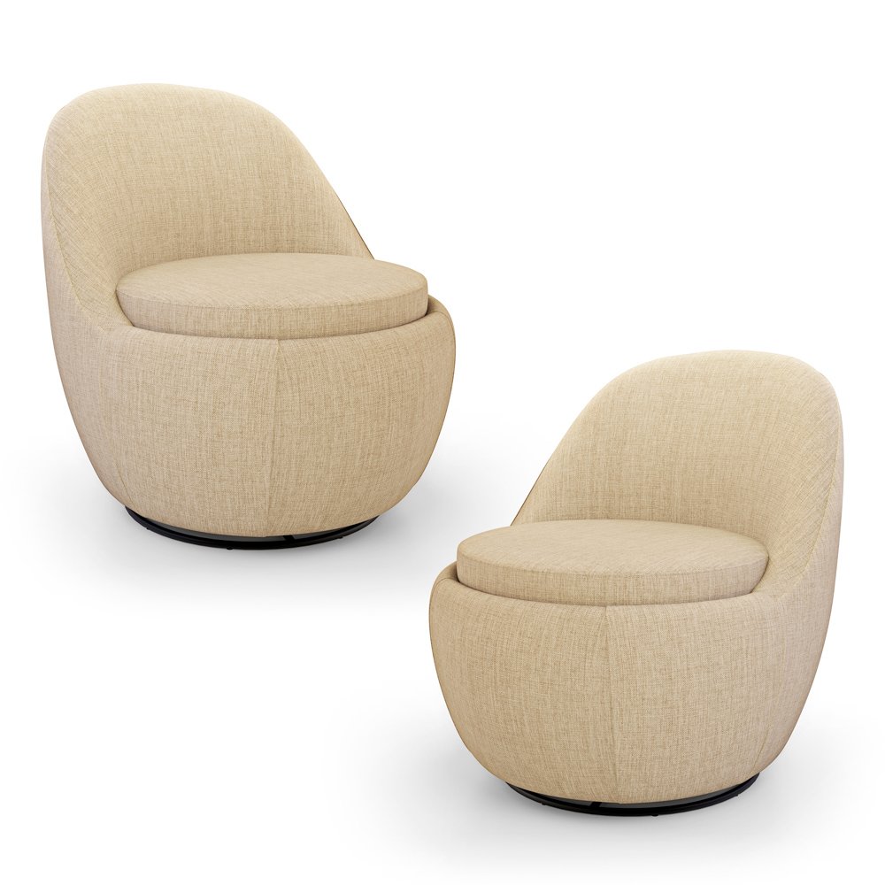 Kit 02 Poltronas Orgânicas Living Memphis Base Giratória Linho Bege - Abmaza