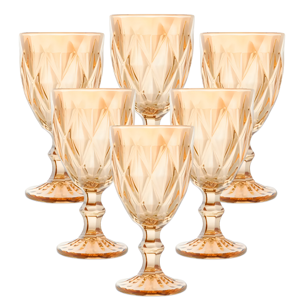 Jogo de 6 Taças de Vidro Diamond Transparente Ambar Furta Cor Bico De Jaca 340ml