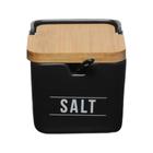 Saleiro de Porcelana Premium com Colher de Bambu e Tampa Madeira Pinus 250gr - Sweet Home