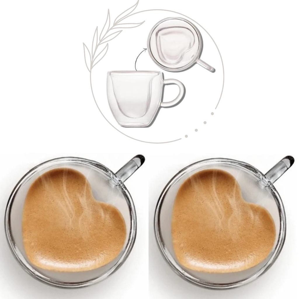 Cj 2 Xícaras P/ Café Dupla Parede De Vidro 80ml Coração
