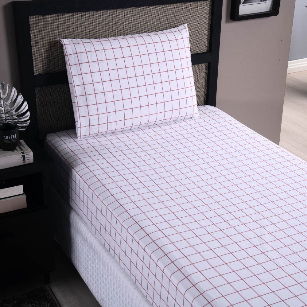 Jogo de Lençol Terry Solteiro 2 Peças Percal 200 Fios Quadriculado - Rosa Claro - 80% Algodão / 20% Poliéster