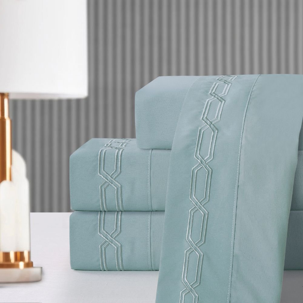Jogo De Lençol Casal Queen 4 Peças 400 Fios Micropercal Bordado Inglês Toque Macio Luxo Premium - FV Enxovais