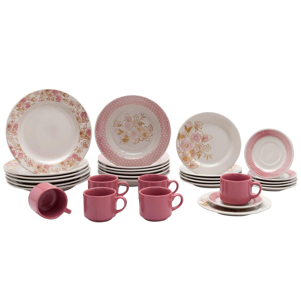 Aparelho de Jantar Chá 30 Peças - Cerâmica Redondo Rosa
