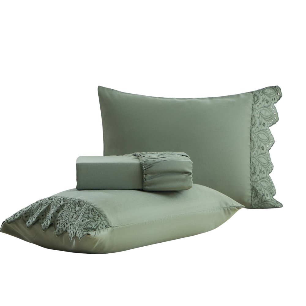 Jogo de Lencol Solteiro 3 Pecas 300 Fios MicroPercal Bordado - 100% Poliester