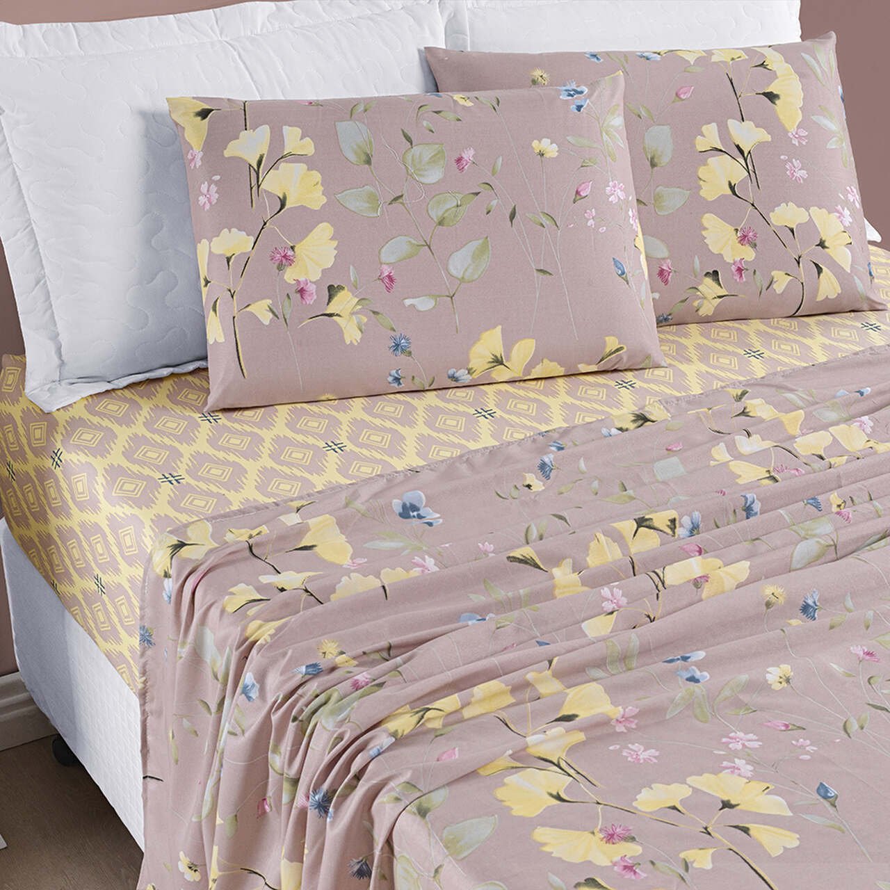 Jogo de Lençol Solteiro 3 Peças Estampado Microfibra Roupa de Cama