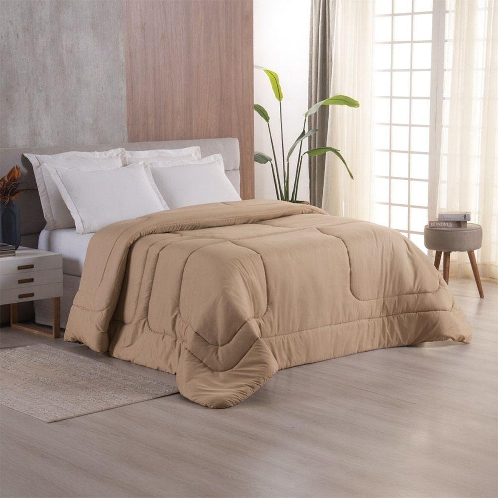 Edredom Bali Liso Casal 01 Peça Micropercal Dupla Face 400 Fios Macio - Bege - 100% Poliéster