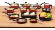 Conjunto de Panelas e Utensílios Antiaderente com Tampa de Vidro Tramontina Turim Cereja 11 Peças