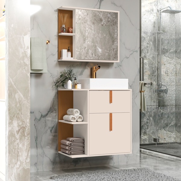Balcão Gabinete de Banheiro Suspenso 80 Belarus com 2 Portas e 1 Gaveta Arenas