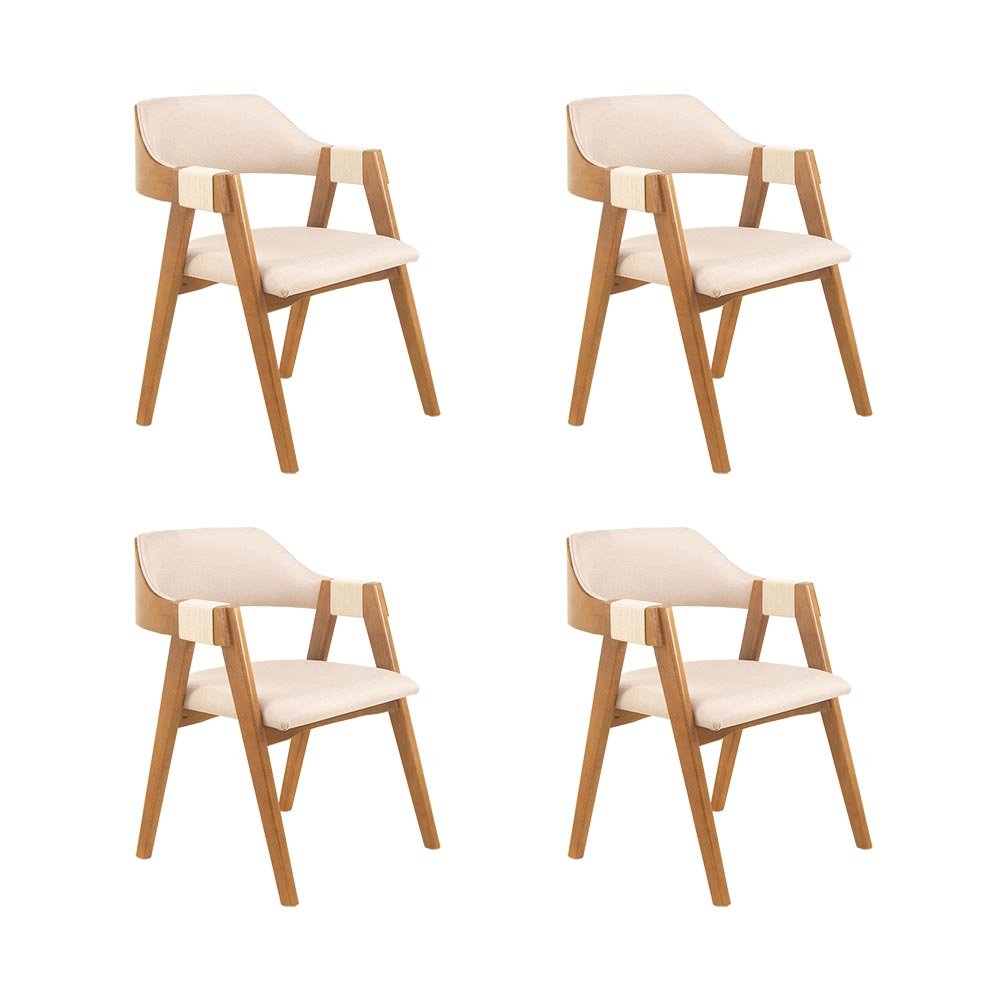Conjunto 4 Cadeiras de Jantar Ottawa Amêndoa e Linho Off White - 58959