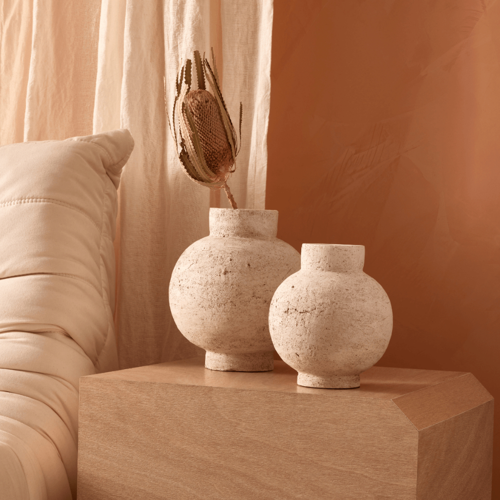Vaso decorativo cachepot cimento bojudo (P 18cm) / (G 24cm)