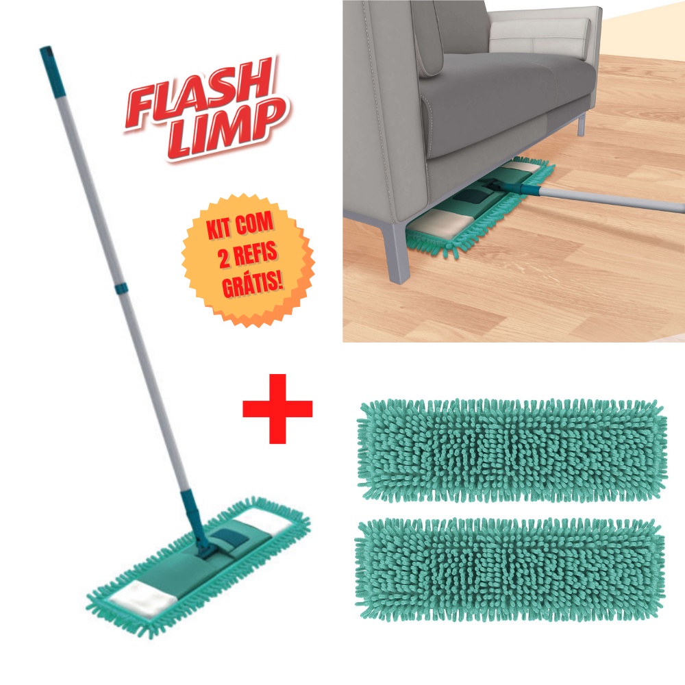 Mop Flat Chenile Cabo Ajustável Melhora Desempenho Da Limpeza Flash Limp