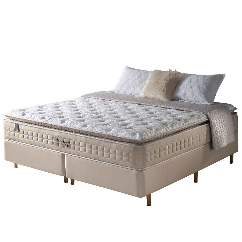 Conjunto Cama Box King Size Molas Ensacadas Pillow Top Macio Cincinnati 193x203x73
