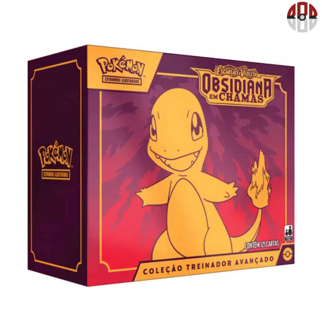 Box Elite Pokémon Escarlate e Violeta Obsidiana em Chamas Charmander Coleção Treinador Avançado Copag Booster Cards Cartas em português