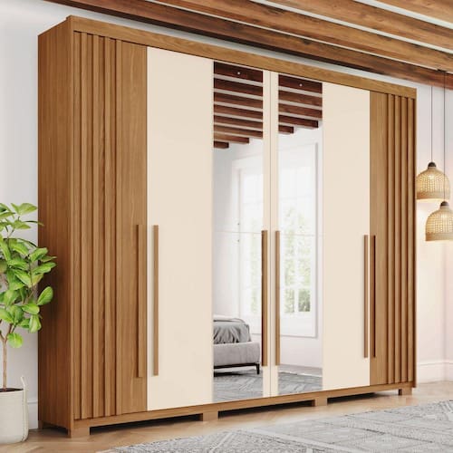 Guarda Roupa Casal com Espelho 6 Portas 4 Gavetas Alba Made Marcs