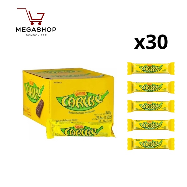 Bombom Caribe chocolate ao leite com um recheio sabor banana 28g 30un