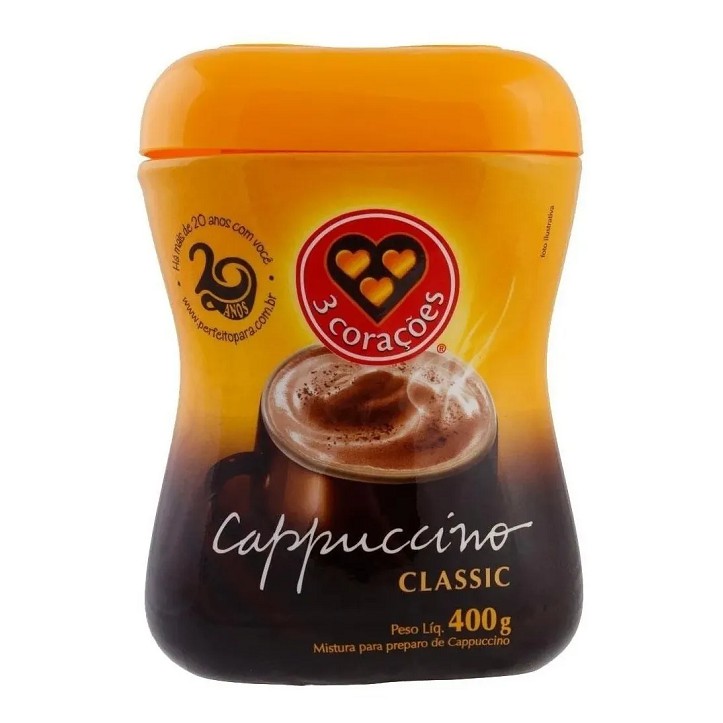 Café Solúvel Cappuccino Classic 3 Corações Pote 400g Promoção