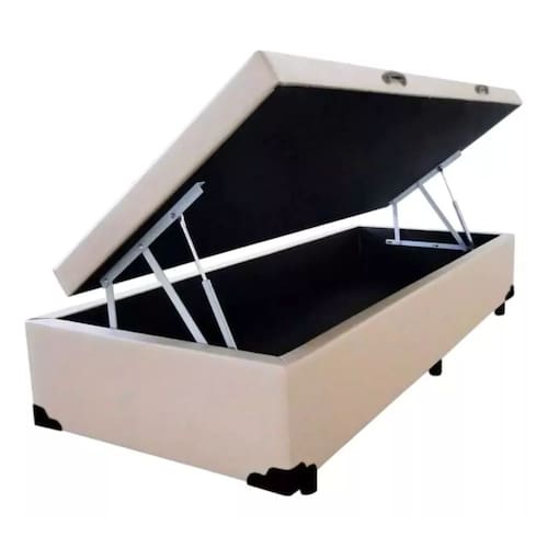Cama baú Solteiro 088 x 188 Reforçada com 48cm de Altura - Exclusive - Bege