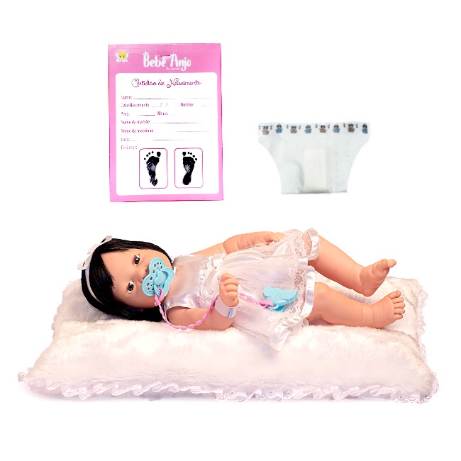 Boneca Bebê Reborn 45cm Corpo de Vinil Premium Certidão de Nascimento Fralda e Chupeta Angel Toys