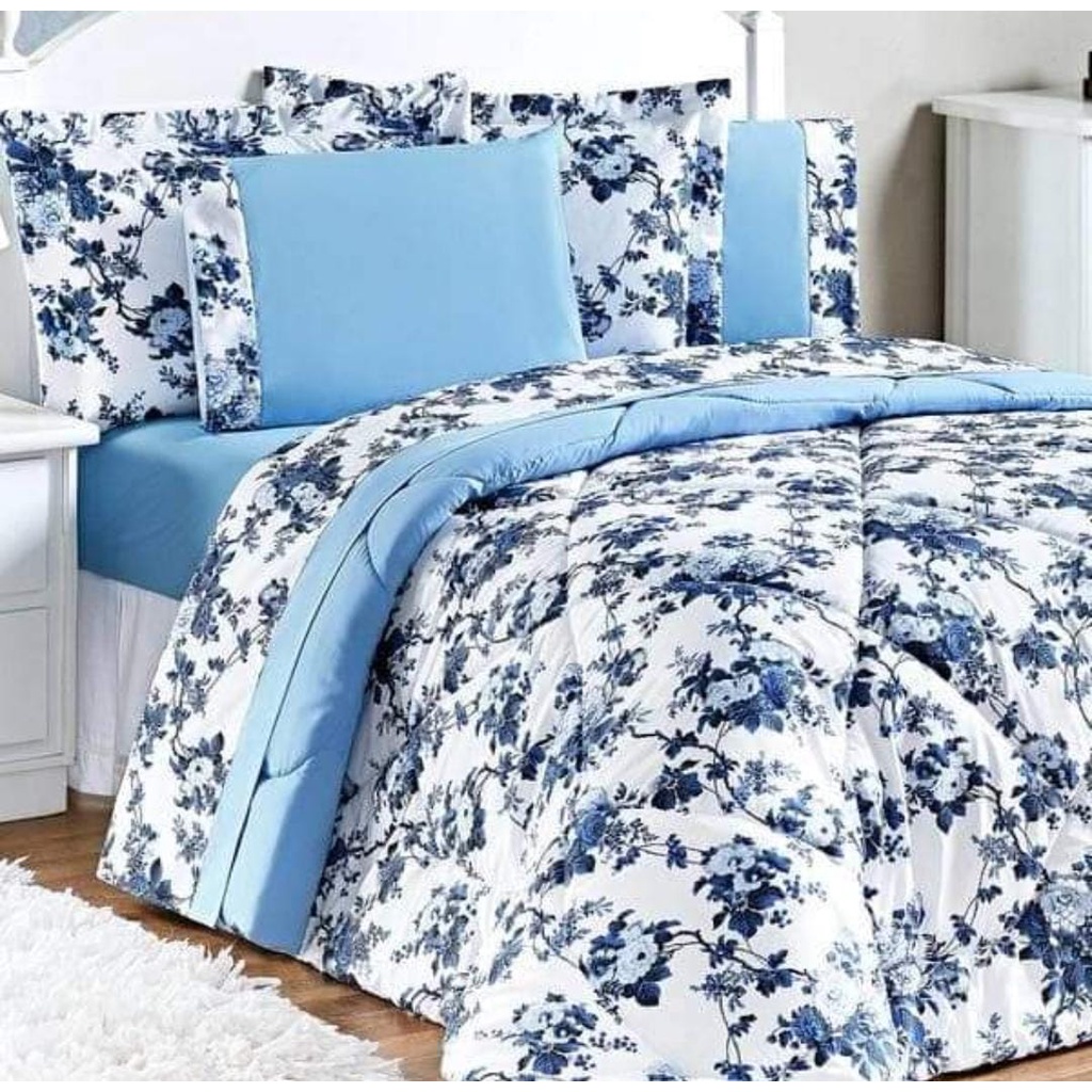 Kit Edredom Dupla Face Casal Padrão Confortable + Jogo de Lençol 06 Peças