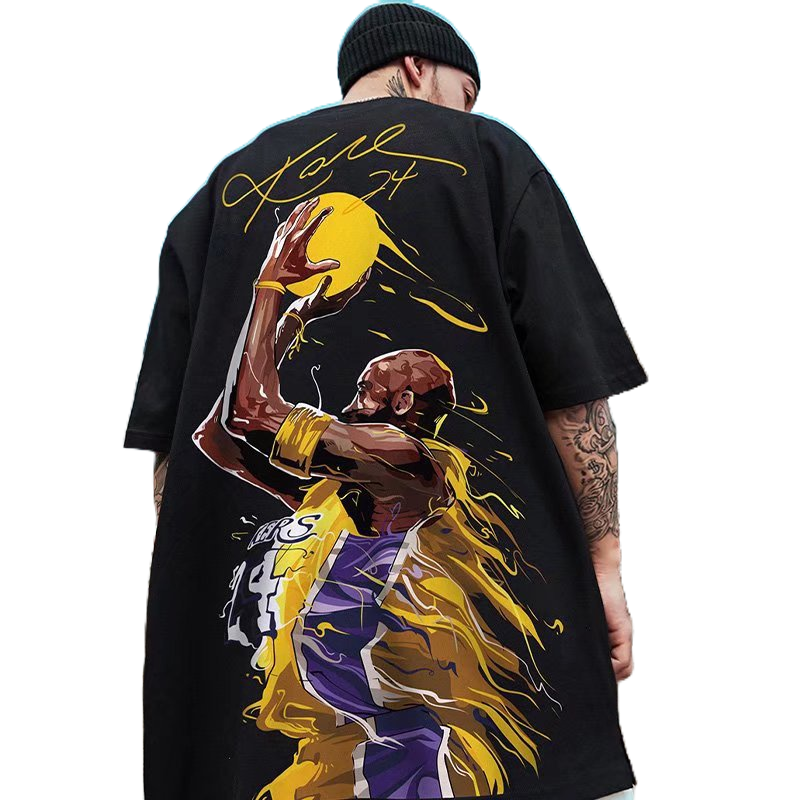 Camiseta Masculina Preta Estampa Kobe Comemorativa Manga Curta Tamanho Grande M-8XL