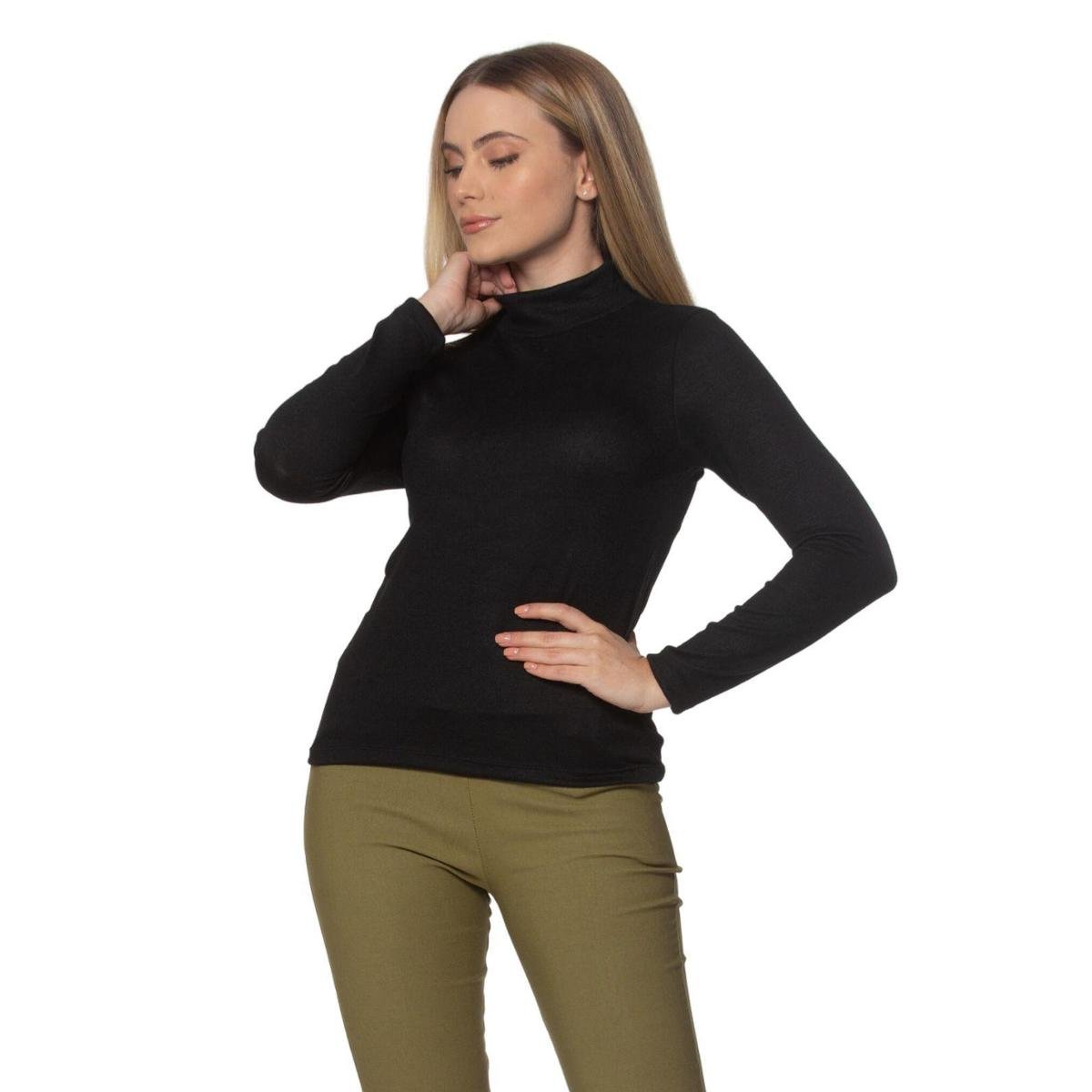 Blusa Básica Gola Alta Manga Longa Lanzinha Preto - Preto - M