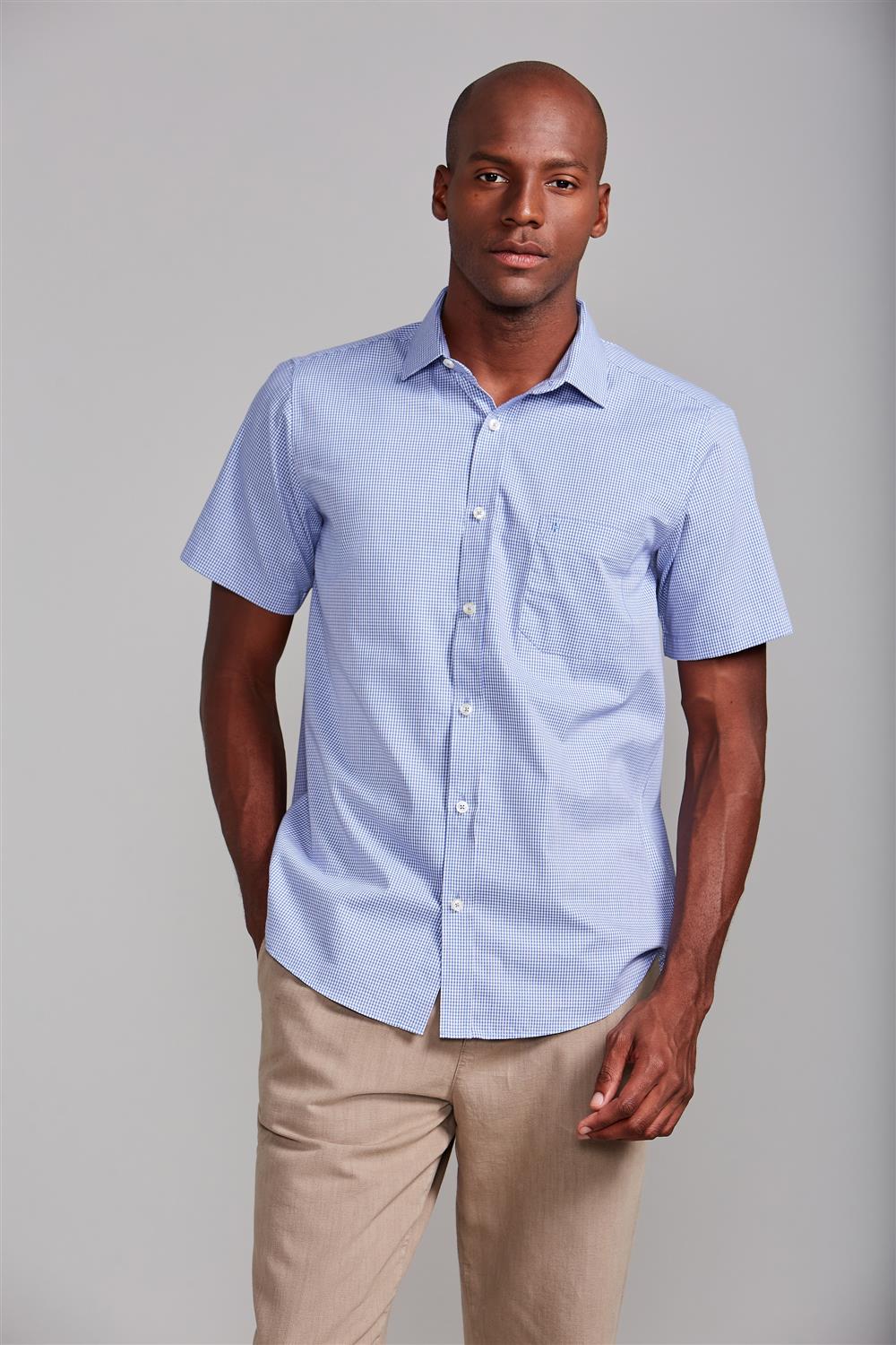 Camisa Masculina Manga Curta Com Bolso - Azul P