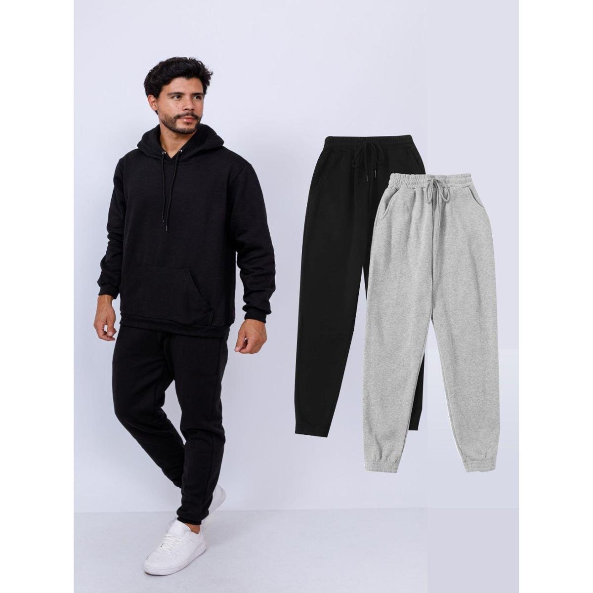 Kit Com 2 Calça Moletom Felpado Masculino - Preto e Cinza