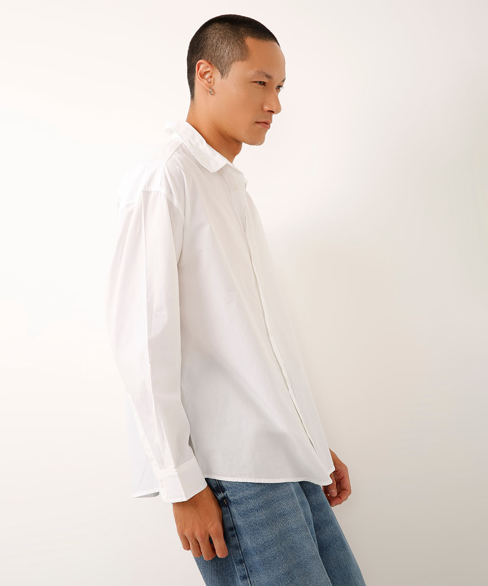 Camisa Oversized Gola Padre de Algodão - Off-white
