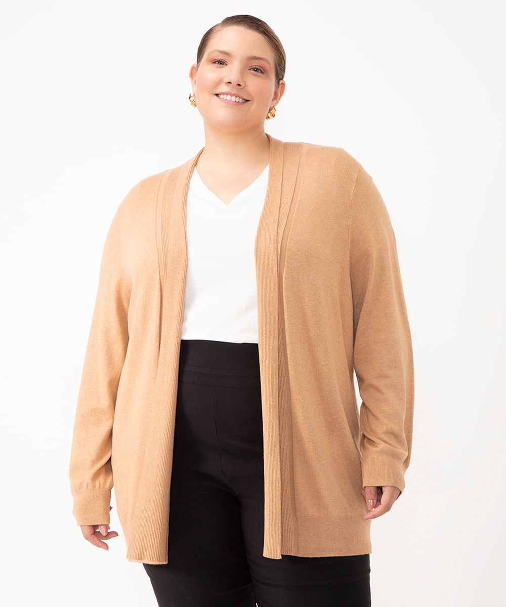 suéter capa de tricot plus size - bege