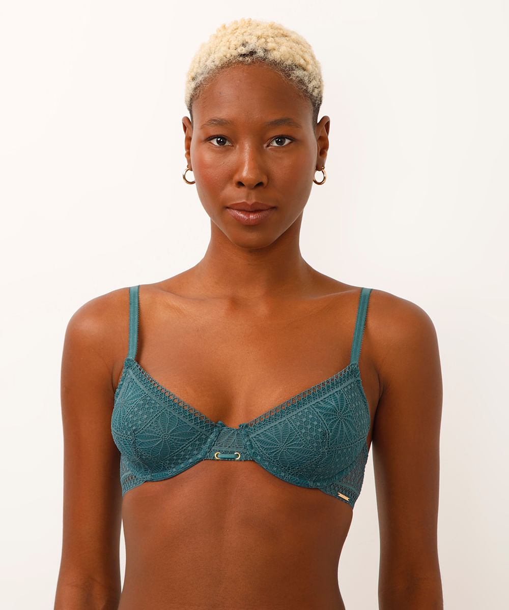 Sutiã de Renda sem Bojo com Aro Meia Taça