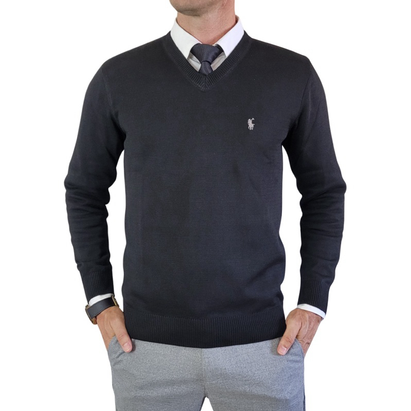 Suéter Blusa Masculino básico,malha fina, Gola V em Tricot.