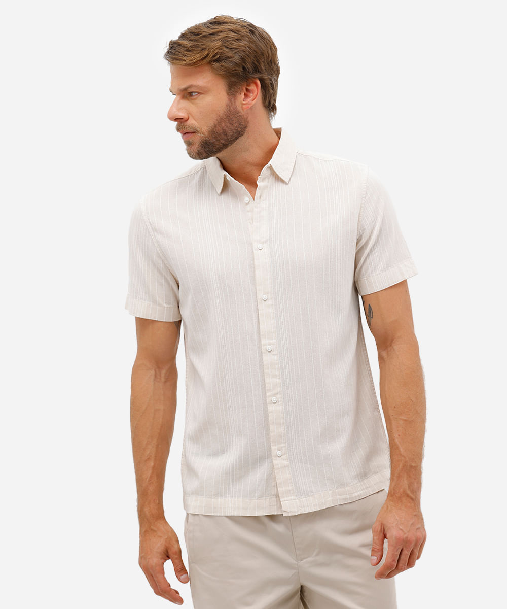 camisa masculina de algodão manga curta listrada off white