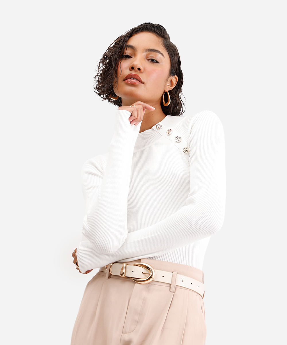 suéter feminino de tricot canelado off white